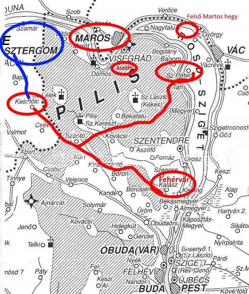 A 12. birtok településeinek mai nevei: Nagymaros (morus). Visegrád (magában foglalva a korábbi Aszófőt) (nogu asa fehe rea), Kesztölc (castelic), Budakalász (magában foglalva a Fehérvárt) (feheruuar), Tahitótfalu (magában foglalva a korábbi Szentpétert) (petre).